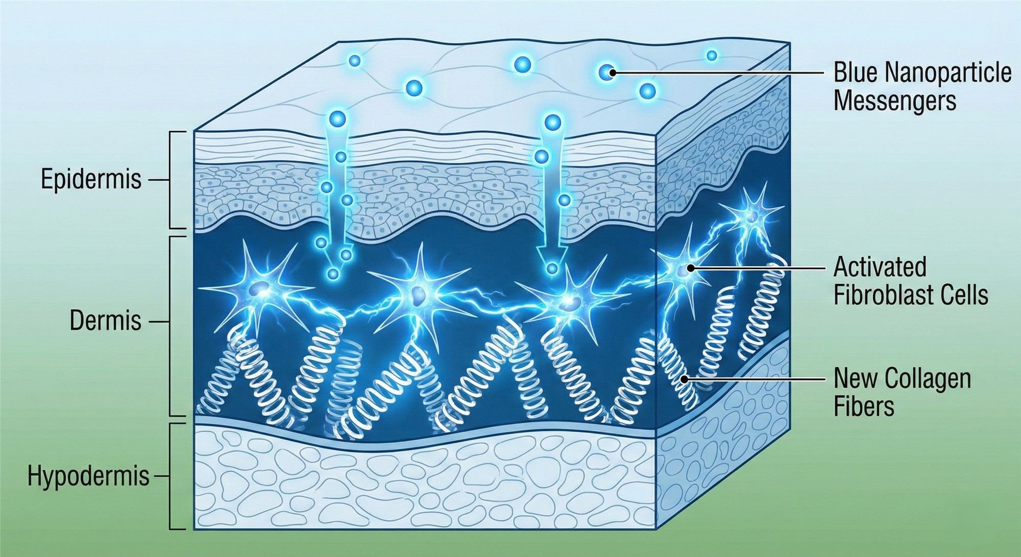 A modern medical illustration diagram showing a cross-section of human skin layers.
